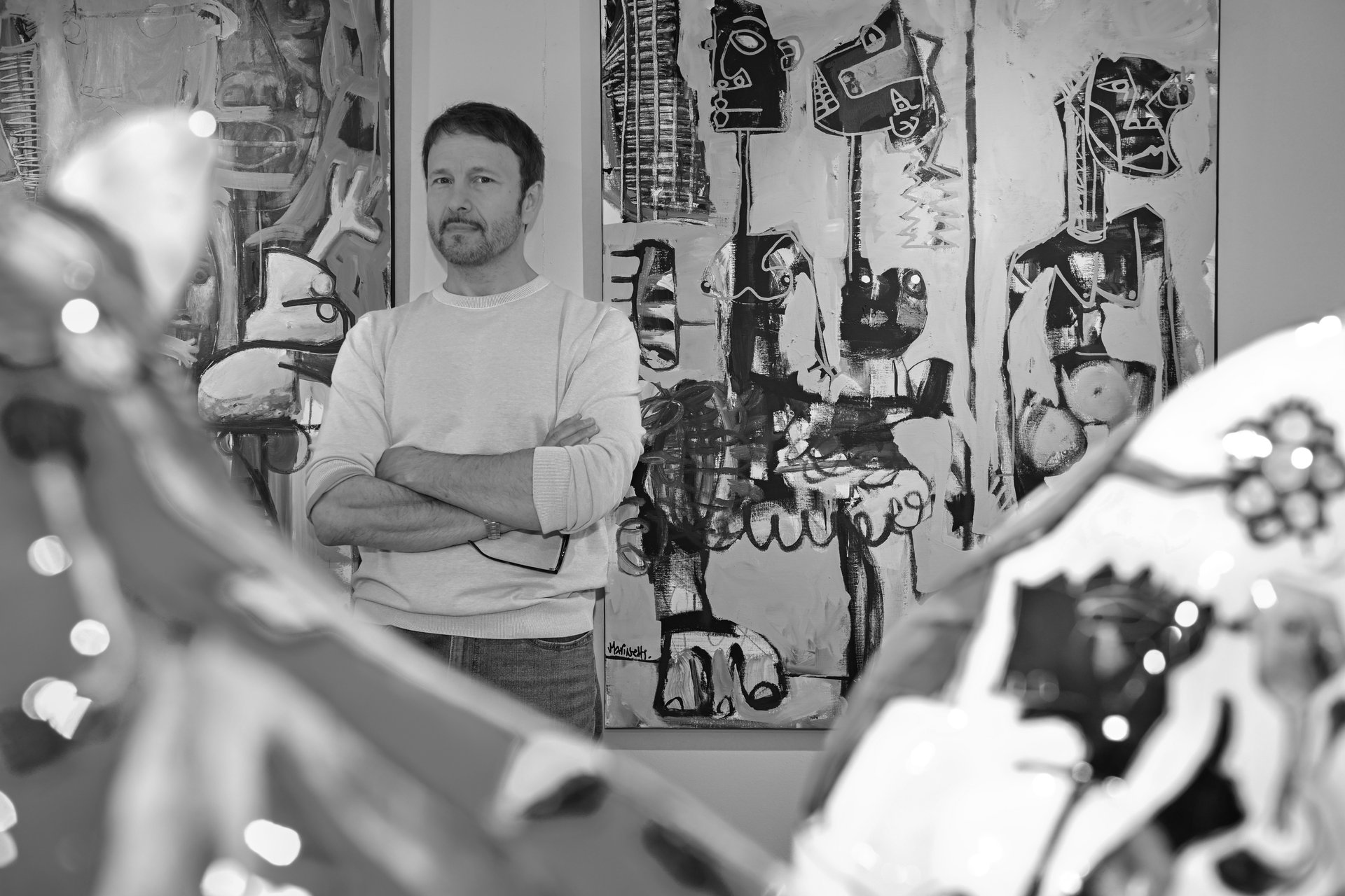 Filippo Tincolini is an Italian sculptor born in 1976 in Tuscany. Trained at the Carrara Academy of Fine Arts, he has been working for over twenty years in his studio at the foot of the famous Carrara marble quarries. Deeply influenced by this emblematic territory and the Italian sculptural tradition, he primarily works with white statuary marble, exploring it with exceptional technical precision. His work combines technological innovation, aesthetic research, and classical heritage to create symbolic and sometimes surreal pieces, characterized by perfect polishing and meticulous attention to detail. Tincolini blends scholarly culture with pop iconography to question our contemporary era with both visual impact and subtlety. Today, he exhibits internationally and collaborates with various galleries and institutions, while regularly participating in projects and discussions on sculpture and new technologies.